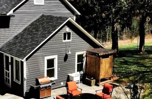 Spring has sprung in the Catskills! We have reconfigured house so that there is a master bedroom with one queen bed, a kid's room with a twin bed and two full offices with doors so two working professionals can comfortably work in separate office space. Super fast Wi-Fi. When you're done working, close the doors to your workspaces, go downstairs and relax. Or don’t work at all and enjoy an outdoor fire and the smell of grass!