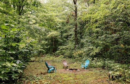 Follow a wooded path to a secluded mid-century modern cottage constructed of stone and wood reclaimed wood from a historic St Joe's rollercoaster. Retro pink ceramic tiles line an open-plan main floor surrounded by sliding doors. You will be surrounded by the great outdoors while sitting cozy inside by our electric fireplace. Located about 10 minutes south of downtown St. Joe, our Idyllic A-frame is a perfect location for the escape to SW Michigan that you've been dreaming about.