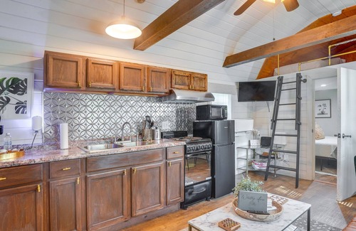 Dream up your Tennessee countryside escape with this Camden vacation rental — perfect for couples or families. This 1-bedroom + loft, 1-bathroom villa provides modern comforts amid a quaint, wooded atmosphere. Spend your mornings sipping coffee on the private deck, followed by a barbecue on the grill and s’mores by the fire pit. When adventure calls, go kayaking or hiking in Nathan Bedford Forrest State Park, or explore Nashville just a day trip away. End the night with a movie on the Smart TV!