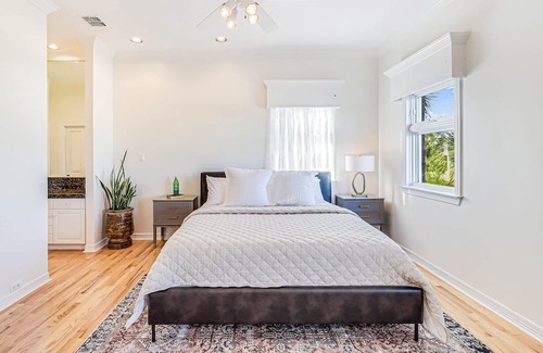 As you explore the rest of the villa, you will discover a private office space, perfect for remote workers and even a separate laundry room. Your own haven of peace, the primary bedroom presents an expansive en suite walk-in closet and bathroom. Indulge in relaxing soaks in the window-side tub or rinse off under a warm stream of water in the walk-in shower. No one's comfort will go unattended to as each of the four bedrooms features personal TVs, high-quality linens, and central air-conditioning.