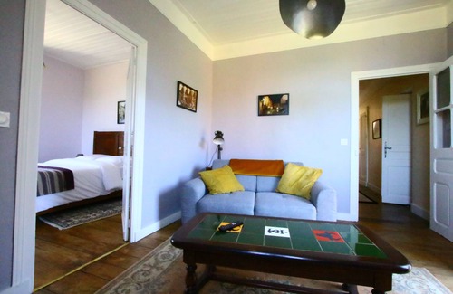 The Gite is on two levels and comprises the two buildings. The ground level is the living room and kitchen with the bedrooms on the upper level. The games room is underneath the bedroom wing and exclusively for your use. The Gite access and garden, with ample parking are for your private use only.