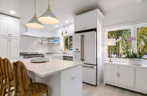 Gorgeous property inside and outside. The outside space feels like a garden oasis, with butterflies flying around daily, abundant flowers, and complete privacy for the heated (or cooled!) pool. Enjoy meals on the well appointed, large lanai space. Come inside and cook in the fully renovated kitchen with a Viking stove and top of the line appliances. Fully renovated bedrooms and bathrooms with a brand new kingsize bed and mattress in the Primary. Walk to pristine Whitney Beach in less than five minutes, or one of the many docks to lounge or fish. Many restaurants, cafes, shops are within five minutes walk such as Marvista, Shore, Whitney's, Sips, Longbeach Cafe and many more. For convenience and to accommodate larger families, bunk beds were added to the Kid's bedroom (three beds in total). The kitchen is stocked with all the tools needed to entertain and/or feed a family. The owner uses the property a portion of the year and lives locally, and loves to be in touch / help guests in any way possible.