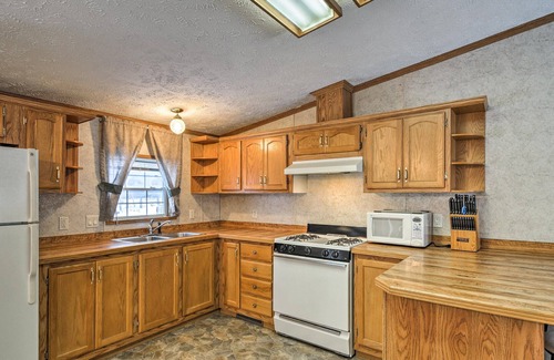 Embrace a lakeside lifestyle at this vacation rental on Green Lake! Located in Interlochen, this 3-bedroom, 2-bath cabin is the perfect spot to lower your anchor. Bury your toes in the sand of the shared beach or reel in your catch of the day from the dock. Travelers who prefer dry land can head to the Center for the Arts just 3 miles north or practice their swings at Interlochen Golf Course. When day turns to night, gather around the fire pit for stories and s’mores with loved ones.
