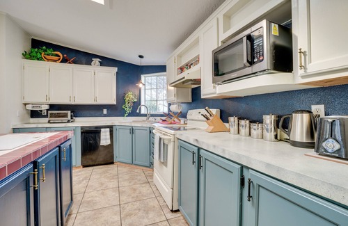 KITCHEN: Keurig coffee maker, cooking utensils, dishware & flatware, dishwasher, microwave, toaster oven, waffle maker, Instant Pot, salad bowls, cookie sheets, kettle