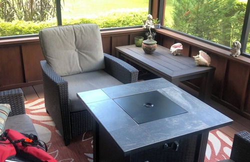 Entire 1,500sq.ft home facing the lake: bedroom, bathrooms, office, kitchen, dining room, living room, den, screened porch, front and back patio, deck on the water! (new paint, new back patio, new AC, new water pump, new metal roof)