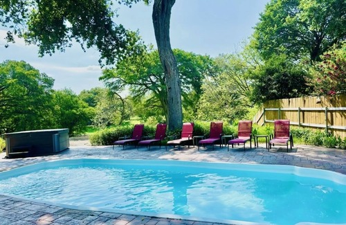 Best-rates for the New Braunfels house starts from $874 per night with includes Kitchen, Laundry, Private Pool, Wellness Facilities, Hot Tub, Balcony/Terrace, Security/Safety, Child Friendly, Internet, Pool, TV, Fireplace/Heating, Barbecue/Outdoor Cooking, Air Conditioner, Parking, Bedding/Linens StayAndPlay offers fully equipped golf villas, golf hotels, golf resorts, luxury golf cabins, and exclusive golf retreats, making it easier than ever to find your perfect golf escape — ideal for families, peaceful getaways, or pet-friendly retreats with the whole crew.
