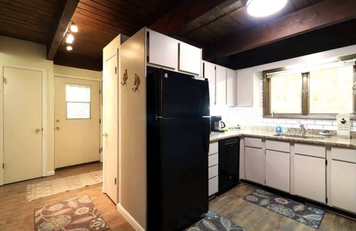 The lowest level offers two bedrooms, one with a bunk bed (both bunks have full size beds and a twin trundle) and the second with a king bed and private patio access to the hot tub. This level also offers an additional living room with a T.V. and two futons, offering sleeping for 4 guests. Inside you'll also find lots of books, games, and puzzles on hand for your enjoyment.