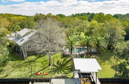 Immaculate waterfront retreat on 4 acres with private pool & dock | House in Dickinson
