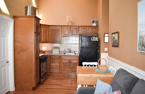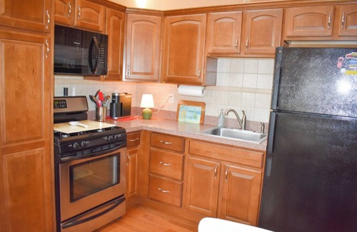 Immaculately clean, charming duplex unit completely renovated! Only .3 miles to Sea St beach. Quick walk to local hot spots: Dog House Restaurant, Woolfies Bakery and Cleat and Anchor! Updated kitchen, appliances and bathroom, hardwood floors, skylight and cathedral ceilings. 5000 BTU air conditioners in living room and master bedroom. Front porch and a rear 6’x7’ deck with picnic table. Outdoor area also includes gas grill and lawn chairs. Home includes cable TV and WiFi.