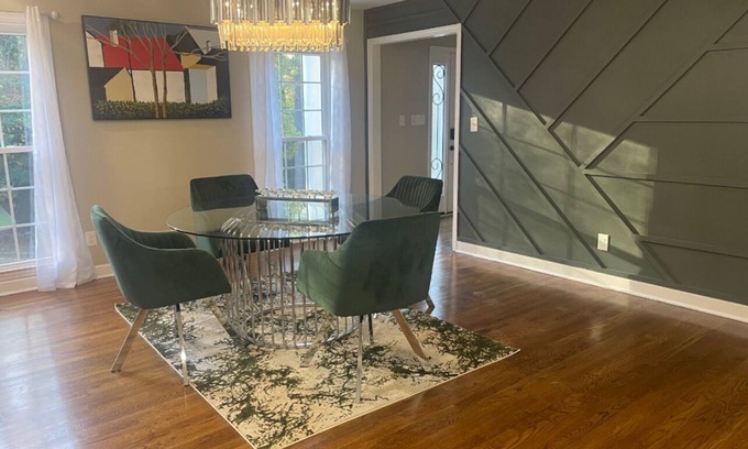 This Atlanta house boasts 4 inviting bedrooms, including 2 king beds, 1 queen bed, 1 full bed, and 1 futon. The 3 bathrooms are equipped with showers and hair dryers. Guests can enjoy the beautiful and tranquil surroundings of this fabulous property. We're happy to assist with any questions while you stay at our house.