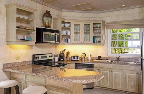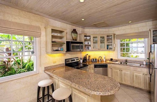 On the lower level a stylish kitchen with breakfast bar adjoins the dining and living areas, all of which open onto a widecovered terrace with dining and lounging furniture. One is enticed to the glorious beach via a pathwaythrough well manicured gardens bordered by further decking and entertaining areas. The closest beach is Fitts Village beach. A cook is included in the rental price, 2 meals a day, either breakfast and lunch or lunch and evening meal (the food must be provided for the cook).