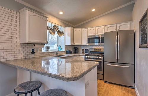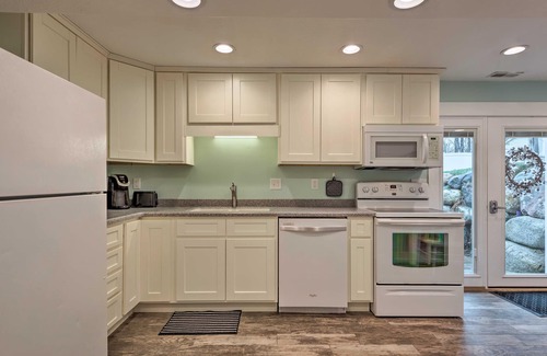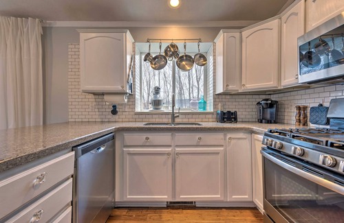 The kitchen is stocked with a Keurig coffee maker (and pods), waffle irons as well as pancake mix and the kitchen essentials. The updated appliances, ice machine in the freezer, dishwasher and quartz counter tops will have you cooking in style.