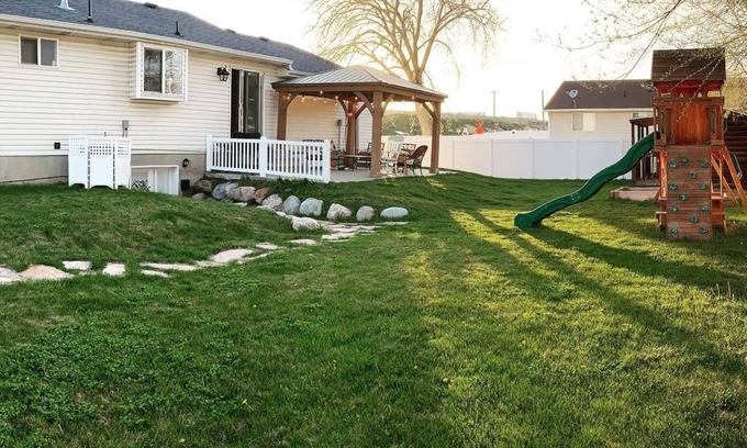 Impeccably maintained, fun yard, 3 Mi from Thanksgiving Point in Lehi is located in Lehi. Impeccably maintained, fun yard, 3 Mi from Thanksgiving Point in Lehi provides accommodation, featuring Sports/Activities, Barbecue/Outdoor Cooking, Internet, among other amenities. This House features Sports/Activities, Barbecue/Outdoor Cooking, Internet, to make your stay a comfortable one.
