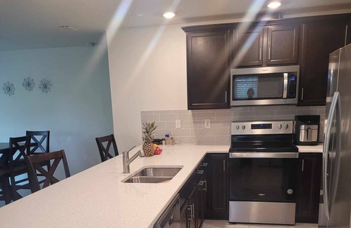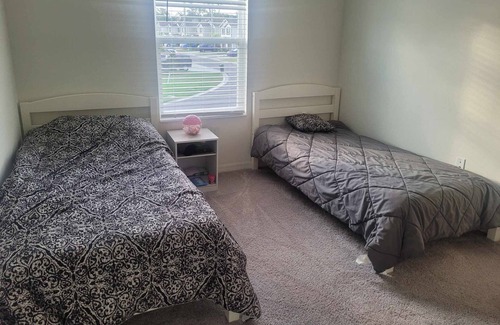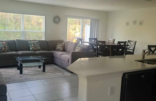 Garage , community swimming pool , 3 bedrooms , 2 1/2 bathrooms , 1 king bed, 4 twin beds in a gated community , close to famous Fort myers downtown and 30 minutes from beaches. Can host up to 6 persons.