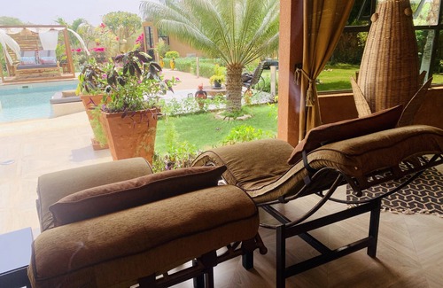 Discover this magnificent villa entirely renovated and redecorated in a chic ethnic style mixed with a contemporary industrial spirit in June 2019, with private swimming pool of 12 x 4 m and integrated bar with fridge. Tastefully decorated in a design and chic style, located on the Nianing Island, in the center of the Residence and surrounded by the lagoon, in a private residence, guarded 24/24 h and 365 days a year.