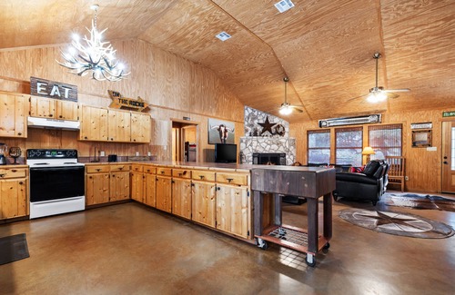 Located in the Mountain Valley subdivision in Concan, Texas, this 3-bed, 4-bath home is ready for your group of up to 16!