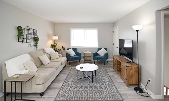 Whether you're seeking indoor comfort or outdoor entertainment, our home has it all. From the three spacious bedrooms to the well-equipped kitchen, fire pit, grill, and outdoor seating, every detail has been carefully considered to ensure a memorable and enjoyable stay for families, groups of friends, solo getaway or business travelers. In addition to its many features, this home also offers the convenience of in-unit laundry and a spacious living room with plush seating, adorned with soft cushions, where you can relax while watching your favorite shows on the large flat-screen TV.