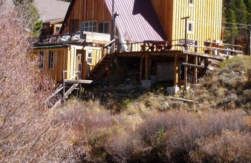 The cabin is nestled on a rise above Quartz Creek, which flows through about 200 feet of the property, within the town. The premises include over one-half acre of land with a few mature pine trees and plentiful willows along the stream. Wildflowers of many types may be observed on the property in the summer, and great views of colorful aspens and willows in the fall. We have ample off-street parking.