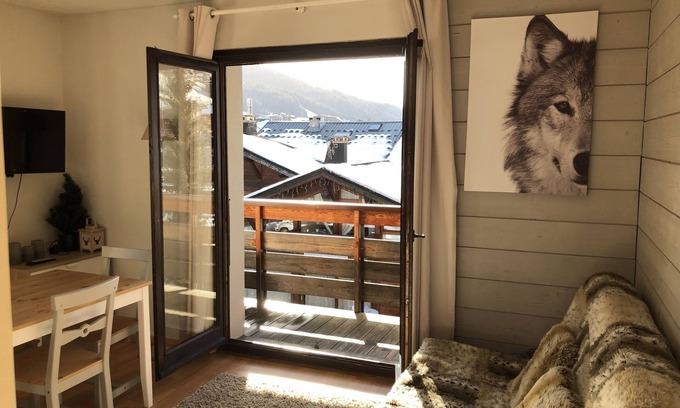 New: 2-room apartment in the center of Les Gets, 1 separate bedroom with a double bed (and possibility of adding an extra bed), 1 living room / kitchen, 1 shower room with WC, 1 balcony, view on the tracks. Residence located at the foot of the Mont-Chéri gondola, 50 meters from the skating rink, the town hall and the ESF (ski school). Free public parking at the foot of the residence. Bus station 30 meters away.