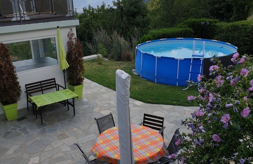 In a detached house, halfway between Sierre (10 min) and Crans-Montana (10 min), with many sites to visit, golf courses and hikes, this accommodation allows you to relax and be completely independent. A panoramic view of the Valais mountains and the Rhône plain await you.