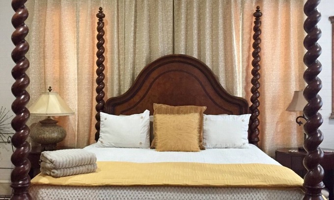 The AUTUMN MOON SUITE is a huge suite on 2nd floor of the Majestic Jewel Inn, located just blocks away from Historical downtown. It is bright & sunny with an amazing view from the bay window which is flanked with room darkening drapes. Beautifully furnished with a very comfortable KING SIZE bed, camel back sofa & chair, smart tv (but no cable) & small fridge. The addition of a modern bathroom with tiled shower completes the suite. It opens up to a shared living room & access to the sitting area on the upper veranda. Six other suites & a Hospitality Lobby, Kitchenette, Grand Salon & Dining Room are available for guests to enjoy. Although we are NOT a B & B, we do supply guests with self-serve coffee, tea, cold drinks, bottle water, milk, cereal & oatmeal PLUS an excellent environment to mix & mingle or simply relax! Please view our photos & the captions will give you more info about our other suites at the Majestic Jewel Inn!