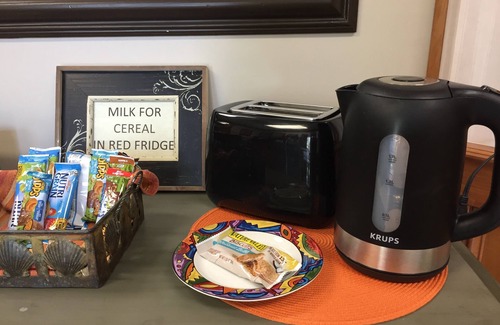 Downstairs is a shared dining room and a lobby with kitchenette and work space. Complimentary self serve coffee, tea, bottle water and cold drinks available. Free Wifi. Plenty of well lit parking. Sitting areas on the wrap around veranda.