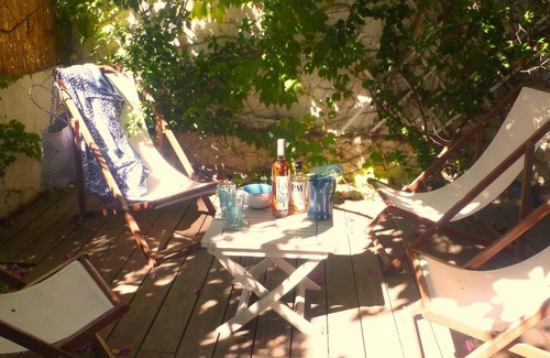 In the shaded garden you can have lunch in the shade of the mulberry tree (tables, chairs, deckchairs, barbecue).