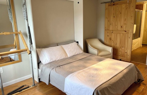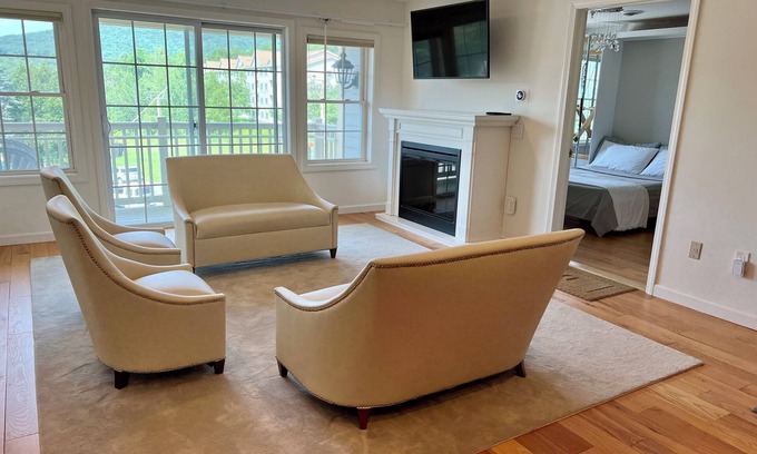 Stay at the heart of it all. Walk to lifts, restaurants, shopping and amenities right from your door. It doesn’t get any easier than staying at JJ Lodge at the Village Center at Jiminy Peak. Views of mountain and Cricket Chair to start your day on the snow. Private Jacuzzi tub to soak tired ski legs and chase away the chill at the end of the day.. Stay cozy in front of the fire place. Create intimate experiences in any room with Lutron's smart dimmers and lighting. Sleep soundly on the Queen bed. Power on the towel warmer for a warm, spa-like welcome out of the shower. Stay connected with Wi-Fi. Private gated parking. Note: Up to two additional guests may sleep in living area, at no additional fee, on twin inflatable beds, provided.