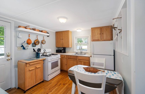 The cottage has a full kitchen, deck, a large backyard , though you will not need your car often because there is plenty to do within walking distance. Enjoy walking the beach in the morning or watching the sunset at night. Plenty to do or nothing to do .