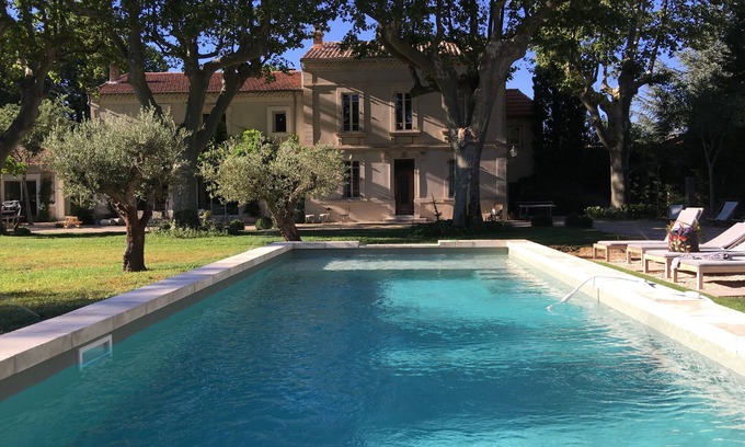 It is nested close to Saint-Rémy-de-Provence, one of France's prettiest villages (12 km away, 10 min), in Cabannes, a small Provencal village. The farmhouse enjoys a choice position to visit the Alpilles and Luberon — two listed Regional Natural Park areas —, tour the Arles towns brimming with historical and medieval monuments, Nimes, and Avignon