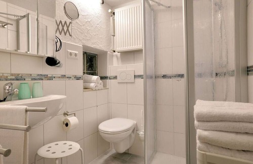 Layout: On the 1st floor: (Living room(single sofa bed, TV), Kitchen(TV, dining table, stove, radio, electric kettle, toaster, coffee machine, microwave, dishwasher, fridge, freezer), bedroom(double bed, radio), bedroom(double bed, radio), bathroom(shower, washbasin, toilet, hairdryer, Towels incl.), bathroom(shower, washbasin, toilet, hairdryer, Towels incl.)) terrace, garden furniture, parking, parasol