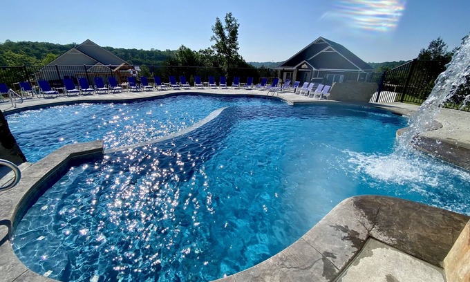 2025 Pool Is OPEN...Stay IN-Town in House #2 of 5 at RockyTop Branson Resort!!! Enjoy our amazing RockyTop amenities including our seasonal summer outdoor tri-level, 24-hour, waterfall pool w/ infinity edge & toddler bubbler area, poolside seating & poolside bathroom, only 45 steps from your front door. RockyTop Branson Amenities also include a 5-hole golf putting green, horseshoe pit, corn hole game, kids playground area, boat & trailer parking w/power outlets, & walking circle.