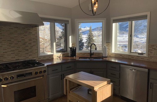 Best location in town! Spectacular mountain and town views. Quiet neighborhood boasts a 2 block walk from downtown Elk Avenue. Pop into town via the path at the end of Maroon Ave, continue up to Woods Walk and Nordic Skiing Trailhead, fifteen yards from the house. The views are unbeatable. Long-term rental 30 night minimum; email or text for details.