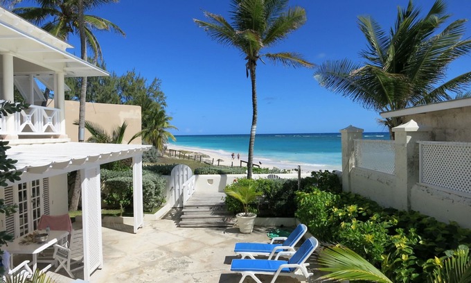 House Seaside - 2 bedrooms / 2 bathrooms - A hidden gem right on Silver Sands Beach on the most southern point of Barbados “ House Seaside", built in 1920 and beautifully restored to most modern standards while maintaining it’s colonial style, is a charming coral stone building beautifully situated at the water's edge on the western end of Silver Sands beach. This elegant, colonial style house is a striking ocean front property. The two bedrooms / two bathrooms apartment on the ground floor has an airy, open plan design. Exposed coral stone walls combine with antique and modern furniture to create an atmosphere that is stylish yet throughly comfortable. Two French doors lead from the living room onto a spacious, partly roof covered and partly open air patio, which is surrounded by lush tropical vegetation. An elevated wooden deck, cooled by the gentle trade winds and sheltered by a coconut tree, is another perfect spot for alfresco dining or simply relaxing and letting the magnificent panorama of turquoise Caribbean water delight the eyes. An aura of casual elegance, privacy and cool comfort make "Seaside" a unique holiday home, serviced by our trained, delightful staff. A limited maid service, changing towels and sheets (on request) every three days is already included in our rates. Additional services can be arranged for a small charge and depending on availability of a corresponding staff member. The bed configuration in house Seaside is a queen size bed and a twin bed in the spacious master bedroom and 2 twin beds in the second bedroom. Amenities to mention are complementary high speed wireless internet access, satellite-tv, stereo systems with ipod / iphone docks, optional private tel./cell phones, complete info on restaurants, supermarkets, shopping, personalized airport pick up/drop, taxi service, rental car arrangements, free on site parking, just to mention some of Inchcape’s features. The ocean and beach front property of the Inchcape Seaside Villas & Apartments where house Seaside is located, is home to several spacious individual houses, located right on the white sand beach of Silver Sands, all with tropical gardens and views of the Caribbean Sea, all tastefully furnished and fully equipped and self contained, one of those being “House Seaside”.