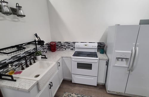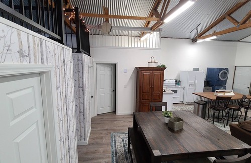 Our newly renovated lodging conversion boasts 1,000 square feet of private living space - a standalone building on a residential country property with landscaped yard and additional acreage. The residence has a full kitchen and bathroom, as well as laundry facilities. There are two private bedrooms for 2 and a loft bedroom accessed by stair that sleeps 3.