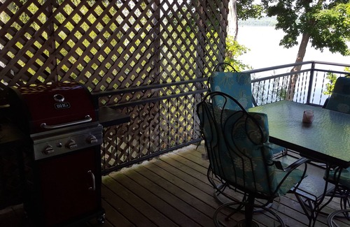 Outside you will see that the lake is only about 50 steps away. There are concrete steps all the way into the water. The shoreline is perfect for swimming or just hanging out. The lake bottom is a rock/mud combination. The boat traffic is a safe distance away leaving you several hundred yards of calm area to swim in. There will be plenty of room for a fire on the shoreline as long as the water level isn't higher than normal. With being on the lake there is always a chance of bugs, please understand we do everything we can to keep the outside of the house clean but sometimes it just is not possible. June, July, and August have what is called a Mayfly hatch occasionally, they do not bite and are good for fishing.