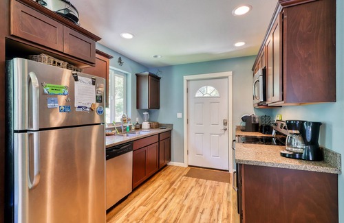 You will have plenty to do during your stay at this cozy home. Outside, there is a grassy lawn, an outdoor firepit, disc golf basket target, furnished patio, deck, and gas grill. Inside, the home has a spacious living and dining space that opens to the full kitchen. And downstairs, you'll feel like you're at a local bar with neon signs, dartboard, and a pool table!