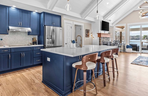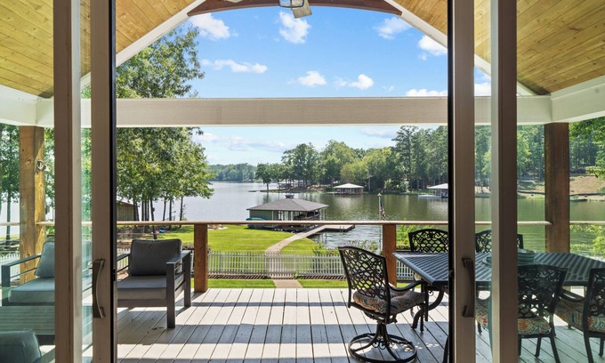 Our beautiful lakefront retreat is the ideal destination for your next family vacation or reunion! This spacious home features 5 bedrooms and 4 baths, a fully equipped kitchen, and a theater room with surround sound. The recreation room boasts Shuffle Board, Golden Tee Video Golf, yoga mats, and even some light weights. Outdoors, you'll find a variety of activities to enjoy, including fishing, swimming, and kayaking. We also offer a swim pad, a power awning for shade on the dock, a fire pit with chairs, extra beach towels, corn hole, and more!