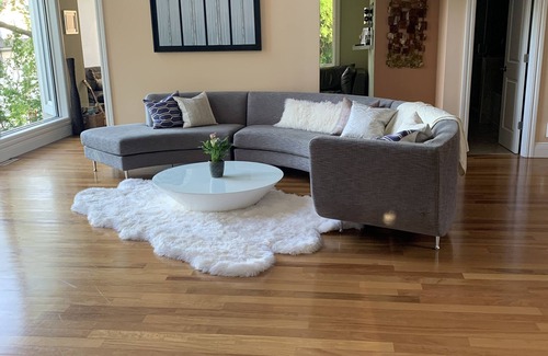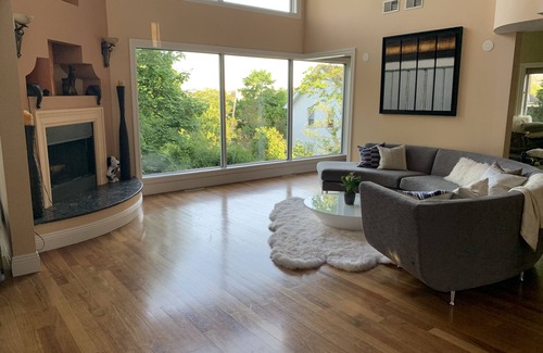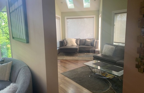 This amazing property is stunningly beautiful in a quiet neighborhood. It is the TOP LEVEL of a duplex. The gourmet kitchen is fully stocked, luxury amenities throughout including rain shower, dual sprays in bathrooms, floor to ceiling windows boasting amazing views, 3 large screen TVs, 10 minute walk to the METRO NORTH train into the heart of Manhattan, close to major highways into the city as well.