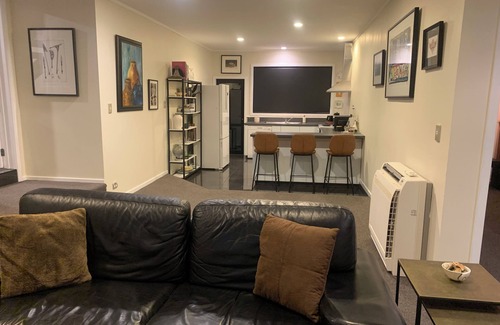 This stylish place to stay is perfect for trips to popular Mapua. This mid century modern home is elevated above the sea with breathtaking views of the mountains and estuary. The home features beautiful art and has 2 bedrooms - each with queen sized beds, a kitchen, lounge, toilet and a luxe marble tiled bathroom. Ideal for couples, friends and family getaways. Nearby is the bustling wharf of Mapua, with artisan shopping, craft brewing, wine tasting, and a wide range of restaurant options.
