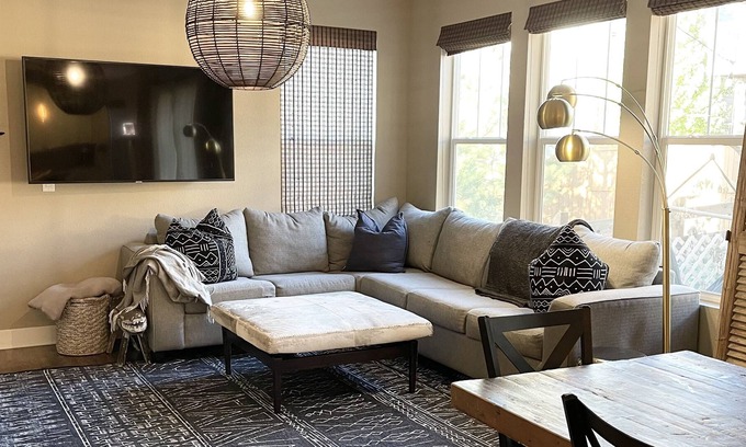 The kitchen is fully equipped to cook and bake anything! We keep the home stocked with spices, baking supplies, and the basics to get your stay started. The kitchen bar seats 3, while the dining room comfortably seats 6, easily hosting dinners and gatherings.