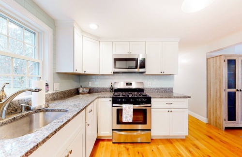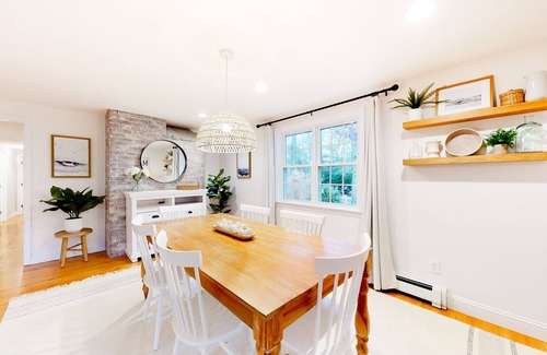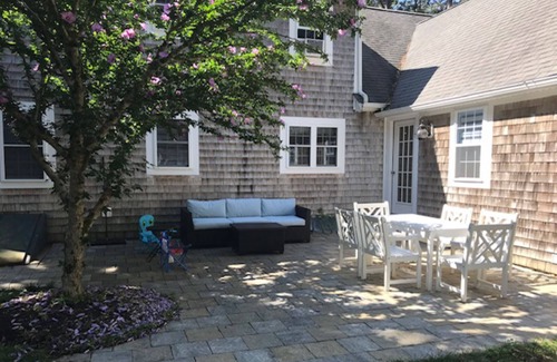 This expanded Cape Cod home is enviably situated on a quiet, dead-end street, on a grassy piece of property lined with mature trees. You can walk to the Cape Cod Children's Museum, ride bikes to Mashpee Commons and South Cape Beach State Park, and take easy day trips out to Martha's Vineyard or along the Shining Sea Bikeway. When you do hit the beach, you'll have beach chairs, a Sport-Brella, body boards, dune spoons, other gear for your use.