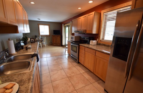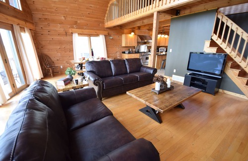 Beautiful 6,000 acre Indian Lake is within steps of your cabin. Greet each morning with amazing sunrises over the lake. This beautiful A-frame log cabin has 3 floors, 2 of which have great views of the lake. Professional kitchen with granite counters, another smaller kitchen on the 1st floor, hardwood floors, huge elevated deck, garden jacuzzi tub in master bath, two fireplaces, and loft are just a few of the incredible features of this rental. This cabin is located on the west side of the lake. A 3 mile bike/walking path is located just steps from your front door. Old Field Beach and boat docks are also located nearby. Fully furnished including fresh linens. This property has everything you need for a comfortable and relaxing stay at the lake. Swimming pool (opened Memorial Day weekend to Labor Day weekend), children's playground, basketball court and stocked fishing ponds are all located on our grounds. The property consists of 2 vacation rentals and a small permanent RV park/campground.