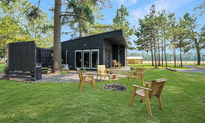At this woodsy 2BR cottage on the shoreline of Pungoteague Creek, wake up to views of the water and open the full-height roll-up wall to let in the breeze. This space blends rustic charm with clean design—think custom cabinetry, pendant lights, and a cozy indoor-outdoor vibe for dreamy days outside and starry nights. Wander our 500+ acre working farm, and explore local attractions (winery and wharf are a short drive away).