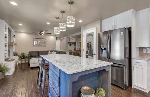 Now that you’re all unpacked and settled in, time to explore the rest of the house. You and your whole group will love the bright, spacious living spaces and features like the laundry room sprinkled throughout the home. On the main level, you’ll find a cozy family room with spacious sectional couch, Smart TV, and a fireplace.