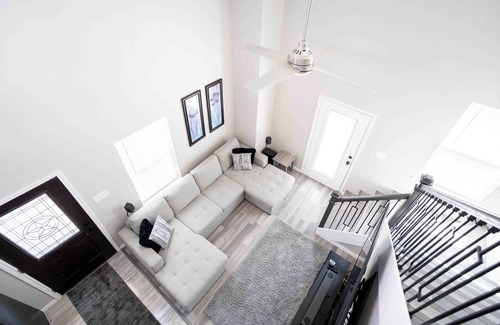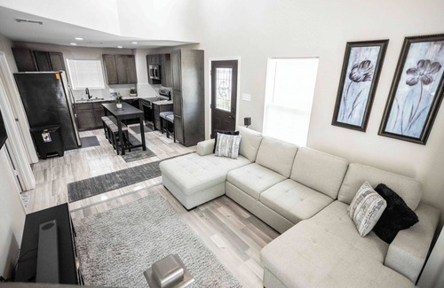 The bedrooms feature 2 queen beds, perfect for a good night's sleep. With 2 bathrooms (1 full, 1 half) equipped with a hairdryer and shower, getting ready for the day is a breeze. The living room offers additional sleeping space with a pull-out sofa bed and upstairs has a large daybed with a pull-out trundle bed. Vrbo Introductory Rate of Only $235 for a limited time.