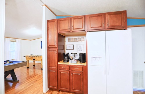 Amenities for all! Spend the day playing pool, foozball, darts, corn hole , washers, a scavenger hunt and treasure hunt also provided. Infinity game table! We have a large pirate ship play set. In the evening relax by the fire pit.