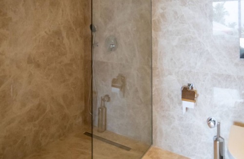 The villa is a newly built construction completed this year and can accommodate up to 10 people. We have 5 bedrooms, three of which have their own bathrooms. Two bedrooms share a communal bathroom. The infinity pool is 9x4 meters long.