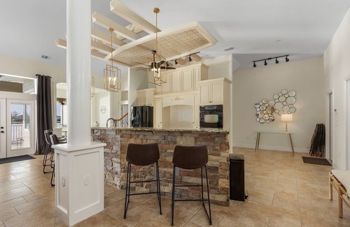 In every detail, it is our aim to make this is a 5-star stay for you: New Sterns & Foster & Sealy plush mattresses with 680-thread count or micorfiber buttery soft sheets, brushed microfiber coverlet blanket, Jennifer Adams duvet cover & perfectly plush feather pillows. Luxuriously comfortable seating everywhere. New power reclining top grain leather sofa set in the living room w/ a 65” smart tv, new sectional and 55" smart tv in the loft, wonderful seating overlooking the lake from the veranda, beautiful new dining room sets, and a stocked kitchen. Smart home with super fast Wi-fi if you need to work, or just want to browse, smart TV’s, smart locks for easy self-check-in.