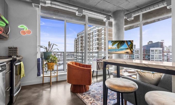 Welcome to our bold, colourful two-bedroom Airbnb in Calgary’s East Village! Featuring dopamine decor, cozy bedrooms, a fully equipped kitchen, and a stylish living area, it’s perfect for unwinding or snapping photos. Step outside to explore top restaurants, shops, and attractions like the Bow River pathway, Studio Bell, and Calgary Tower—all within walking distance. Enjoy vibrant downtown living at its best!